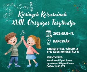 A Magyar Kórusok, Zenekarok és Népzenei Együttesek Szövetsége – KÓTA és a Kaposvári Mikrokozmosz Művészeti Alapítvány szeretettel hívja és várja a kicsinyek kórusait Kaposvárra, a Kicsinyek Kórusainak XVIII. Országos Fesztiváljára, amelyre 2026. május 16–17-én kerül sor.